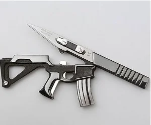 Puna to wielofunkcyjny nóż w kształcie karabinu o długości 10 cm, szerokości 69 mm i grubości 17 mm.
